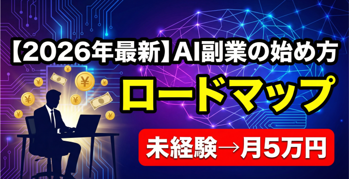 2026年最新のAIツールを活用して、未経験から月5万円の副収入を作るための完全ロードマップ。AI副業のおすすめジャンル7選、神ツール10選、5ステップの始め方を徹底解説します。