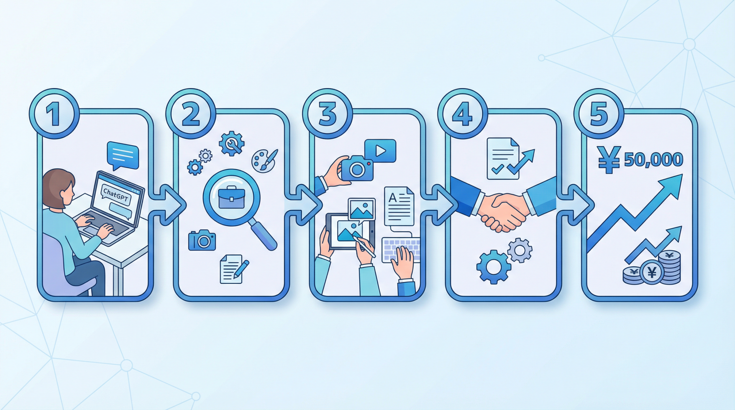 ここからが本題。完全未経験の状態から、AI副業で月5万円を安定して稼ぐまでのロードマップを公開します。